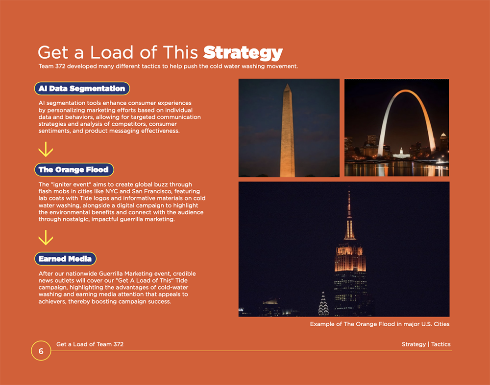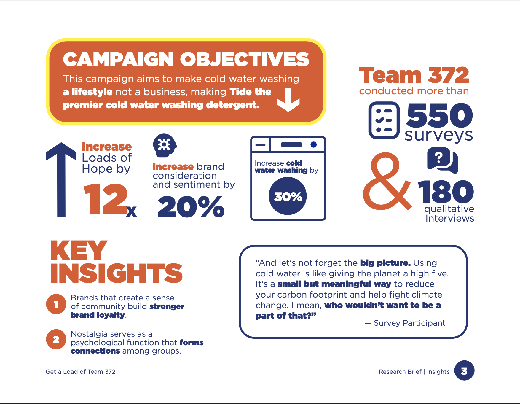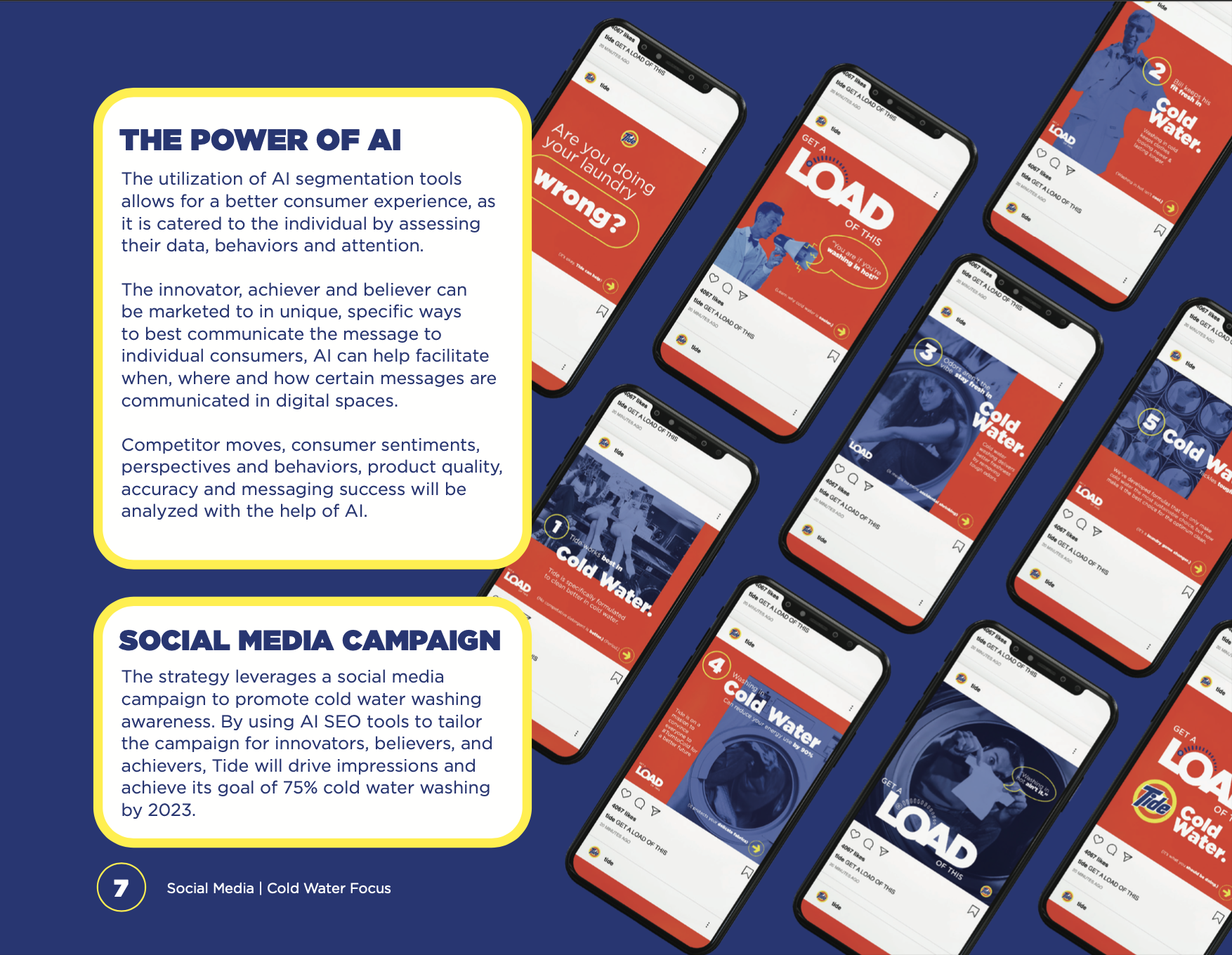 I head to the first class that claims to prepare me for our senior capstone in the spring semester. This class, strategic communication, is designed to research a client for the annual AAF National Student Advertising Competition (NSAC). The client for the 2023-2020 school year? Tide. Their focus for the campaign? Increase cold water washing in 18-35 year olds.