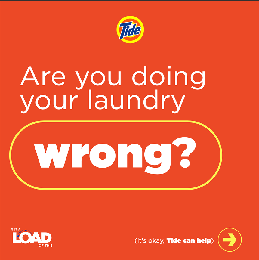 For being as sleep deprived, overworked, and busy as I was, I think they turned out okay. The thought was there, but the details weren’t. I didn’t even put the Tide logo on the first post. GASP! How could I forget that? Aside from that, there are some proximity, contrast, and hierarchy issues and a royal crap ton of orange. This was a fine first draft, but again, getting something done to meet a deadline is far more important than perfection.