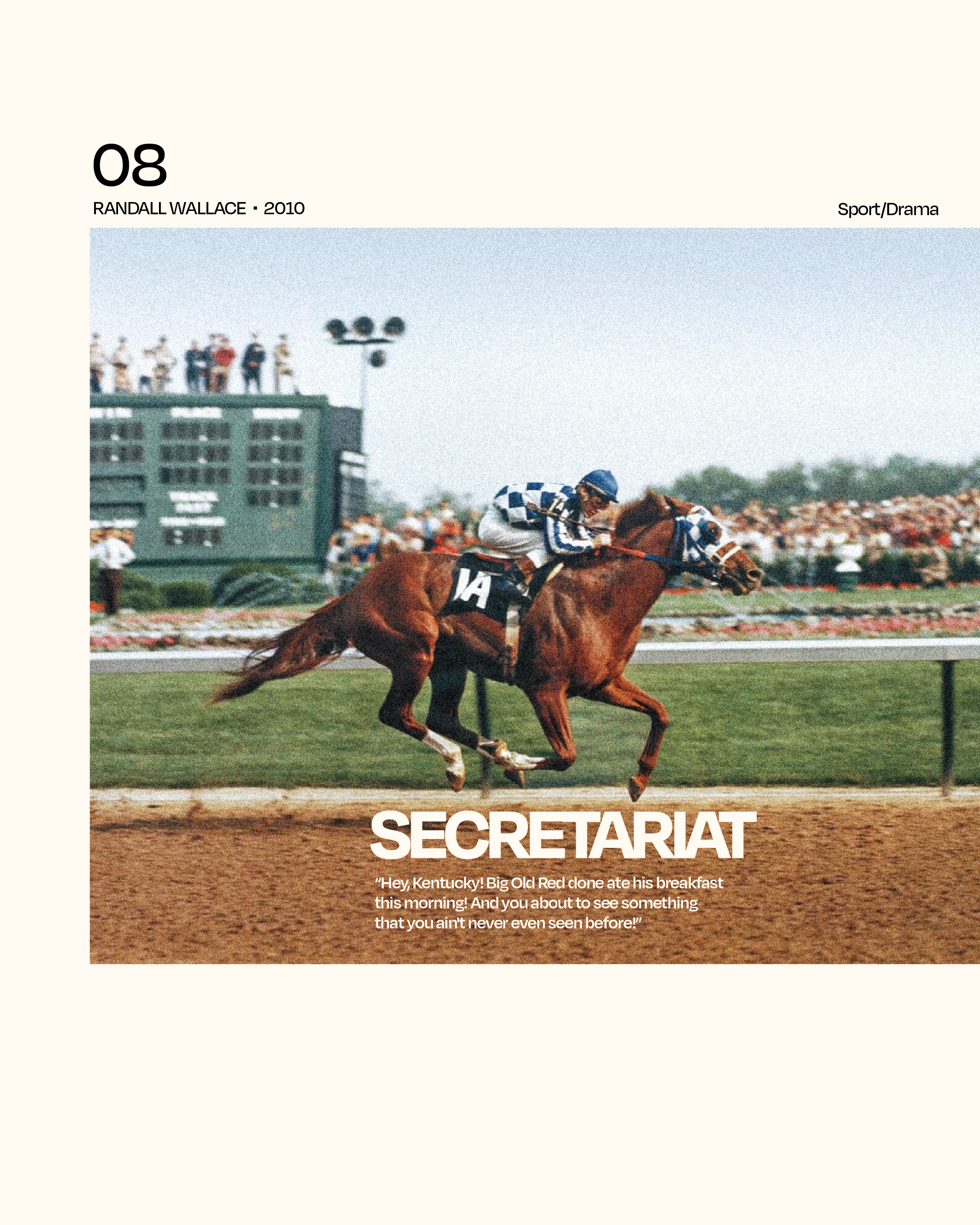 Penny Chenery, a mere housewife, takes on the responsibility of to manage her family’s farm after her father passes away. Penny works her way through the male dominated sport and prevails when her horse, Big Red, starts winning races. This horse, with a personality of it’s own, races his way to the Kentucky Derby and ends up winning the triple crown.