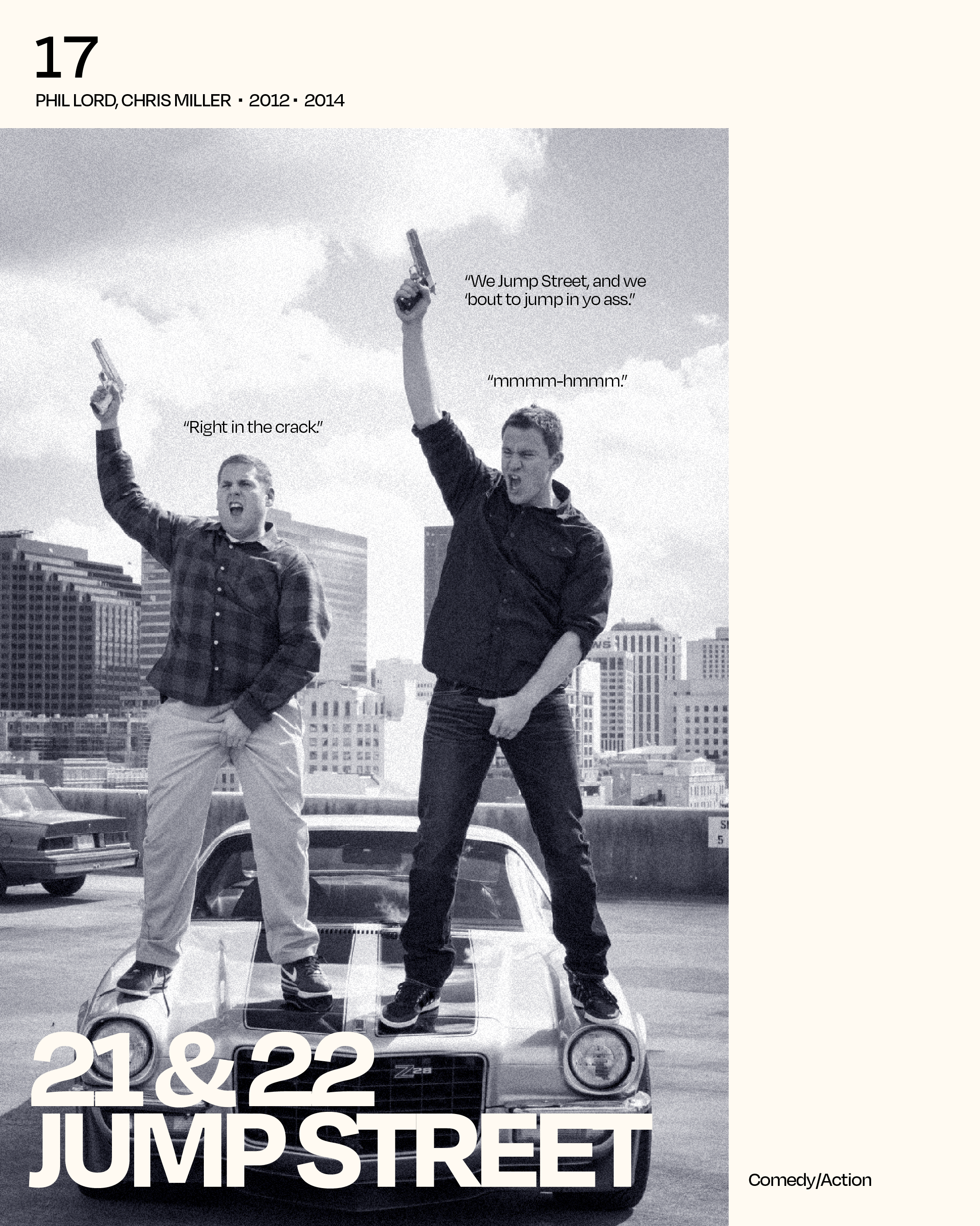 21 Jump Street is the tale of two rookie cops, Jonah Hill (Schmidt) & Channing Tatum (Jenko) (epic combo there) that go undercover to find the source of a drug epidemic running rampant through the halls of high school.