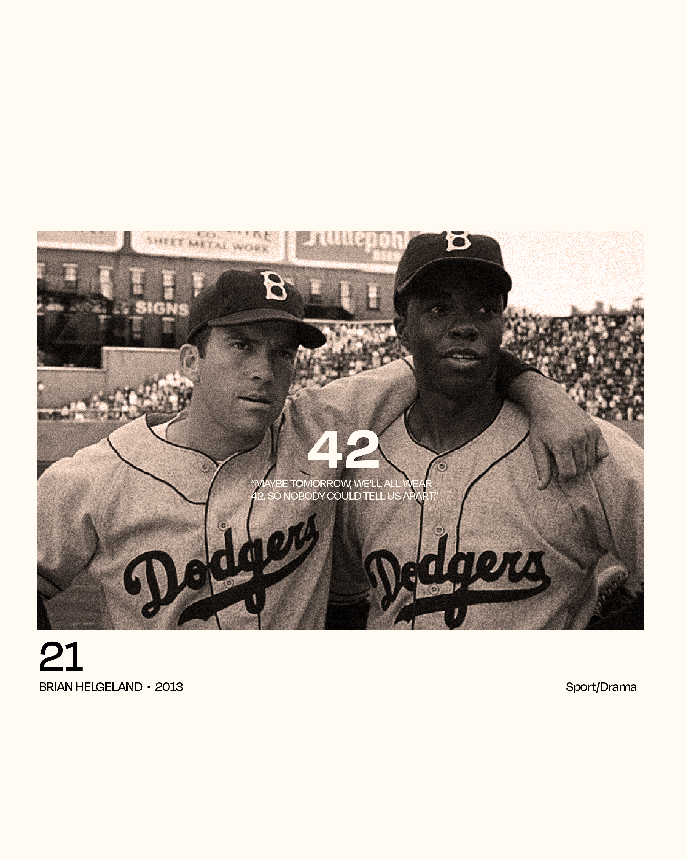 The true story of Jackie Robinson & the Brooklyn Dodgers.